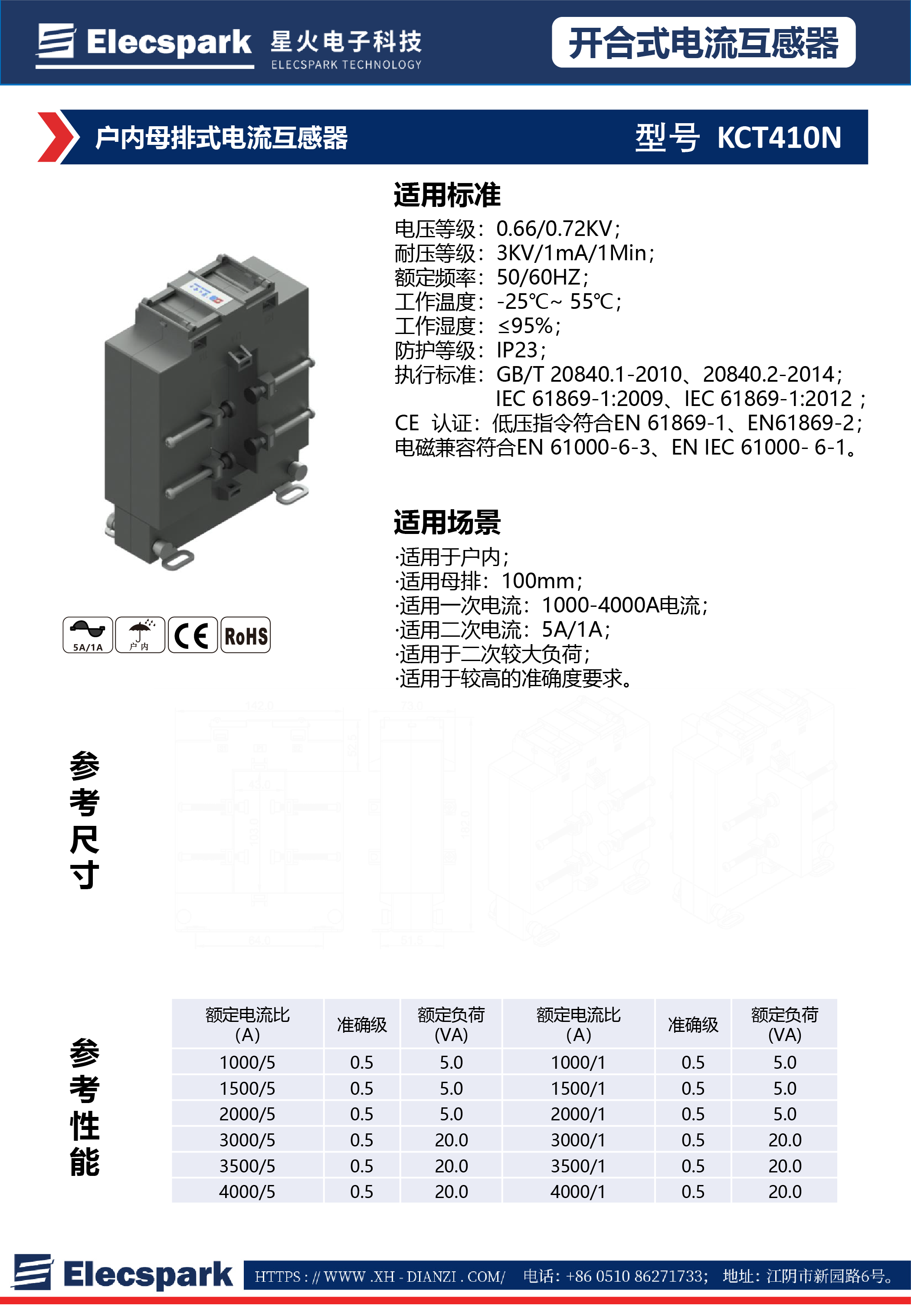 戶內(nèi)母排式電流互感器KCT410N