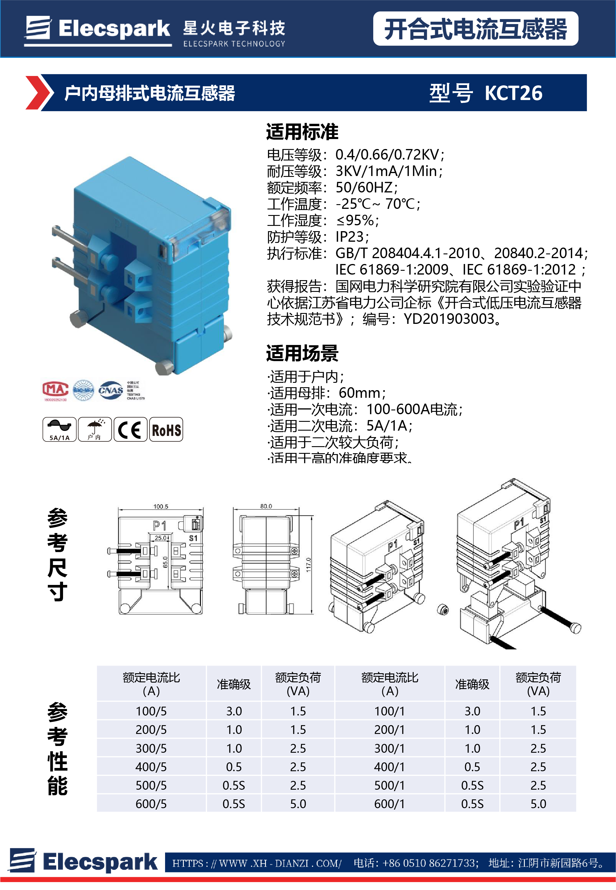 戶內(nèi)母排式電流互感器KCT26