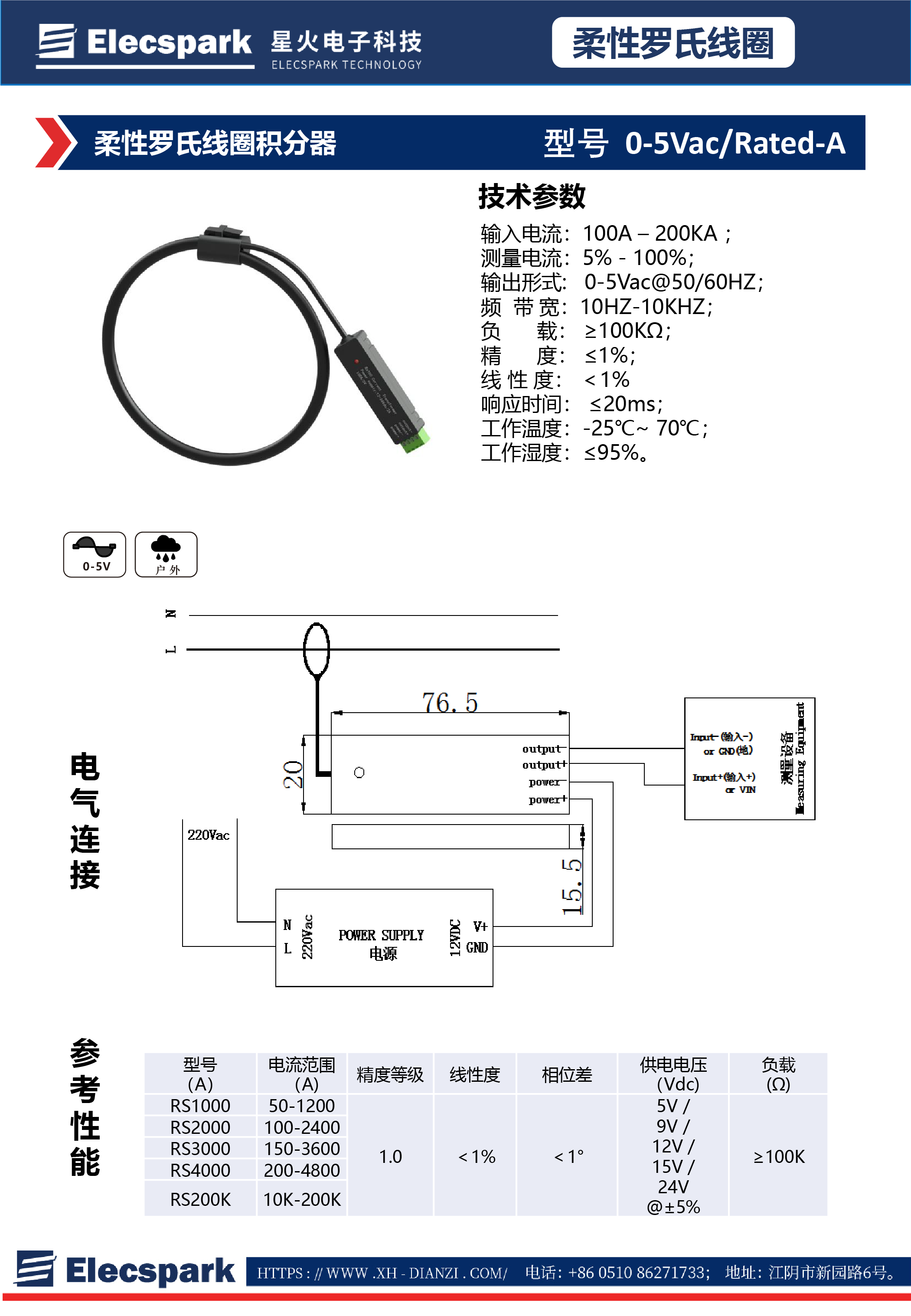 柔性羅氏線圈積分器 0-5Vac/Rated-A
