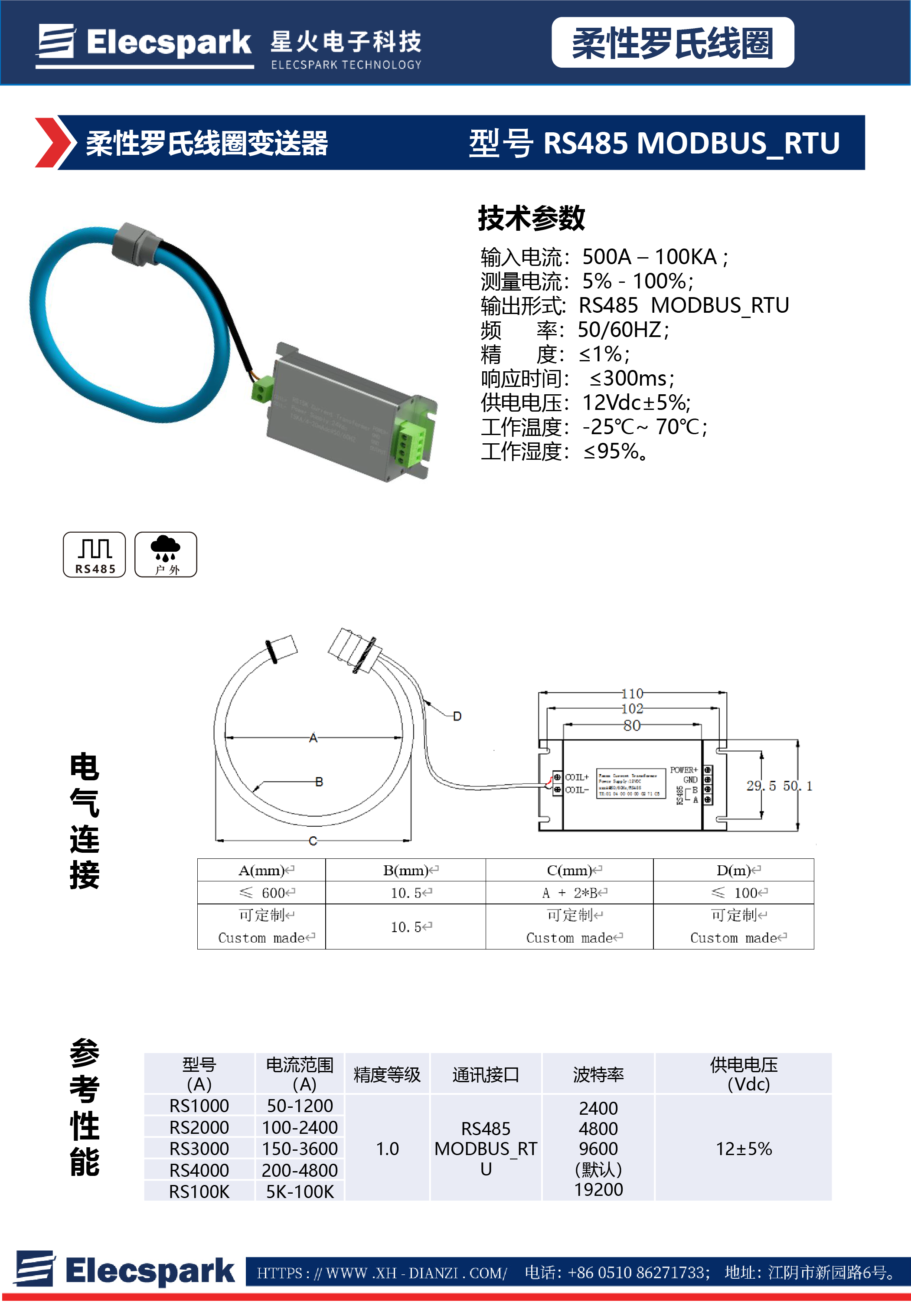 柔性羅氏線圈變送器RS485 MODBUS_RTU
